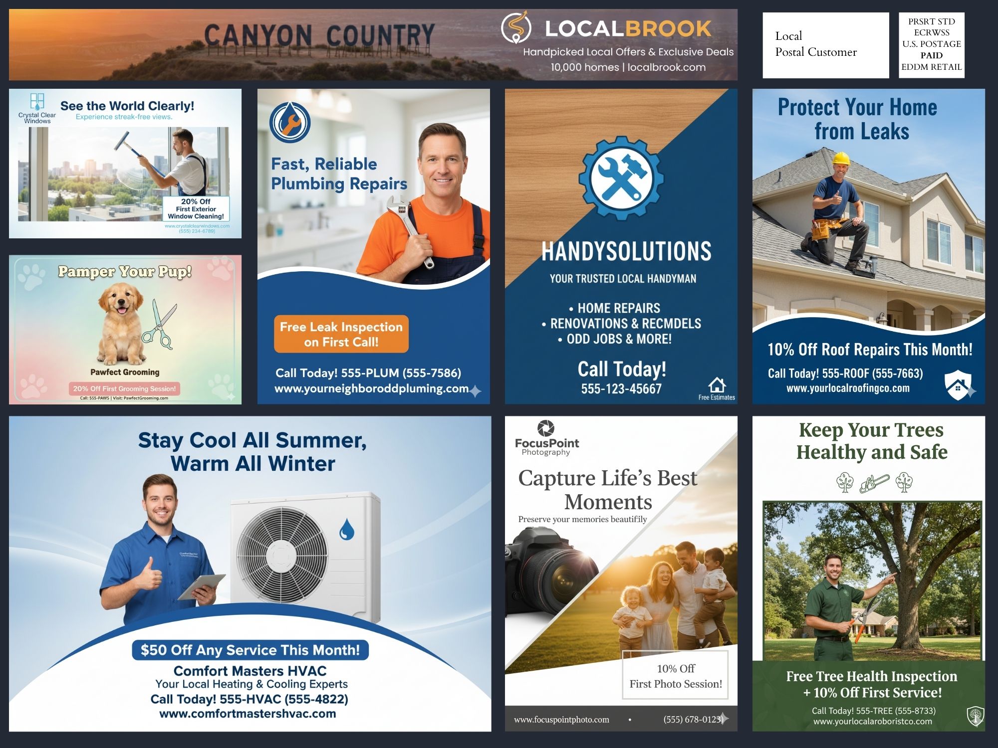 We’re starting in Canyon Country, but soon expanding across Santa Clarita – including Valencia, Saugus, Stevenson Ranch and Newhall giving you even more opportunities to reach the right homes. LocalBrook is an affordable, professional way to grow your business locally — fast, effective, and hassle-free.